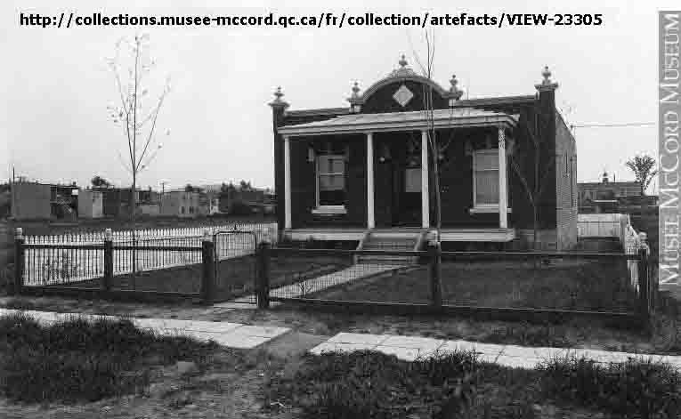 Certes, la maison de la rue Louis-Hébert ne constitue pas un cas particulièrement probant, car certaines de ces maisons sont positionnées encore davantage au fond du lot. Sans compter que son briquetage lui donne une belle allure. Mais le dépouillement des archives photographiques Notman nous a permis de retrouver une photographie très éloquente de cette maison, prise peu de temps après sa construction, et qui nous permettra d’ainsi mieux comprendre son origine (nous ne saurions mieux recommander ce site pour les internautes).