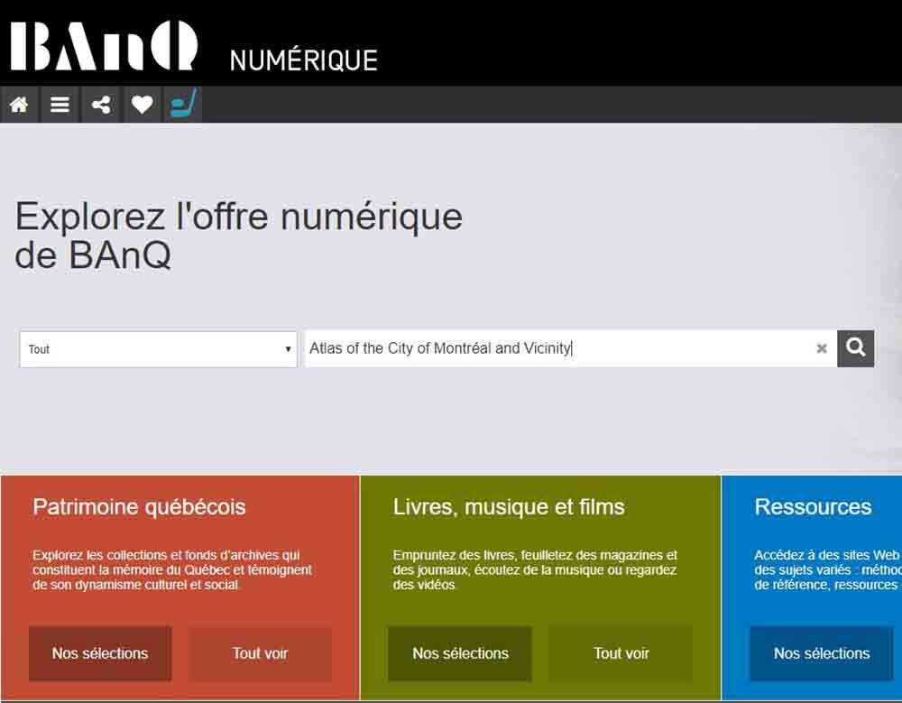 Pour y accéder, il suffit d'inscrire dans la case appropriée de la page d'accueil son titre exact et complet en anglais, soit: Atlas of the City of Montréal and Vicinity.
